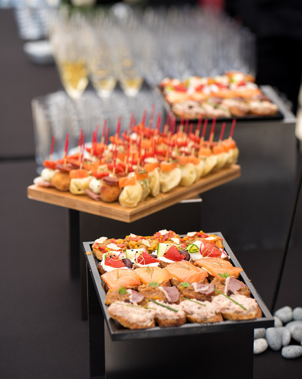 *Navette saumon fumé citronné*Briochette foie gras noisette*Club Serrano fromage au carvi*Brochette de magret fumé, figue et ananas*Pita de bonite, matignon de carottes de couleur*Cookies chorizo, fraicheur de crabe*Tapas fromage mexicain poulet et graines de chia